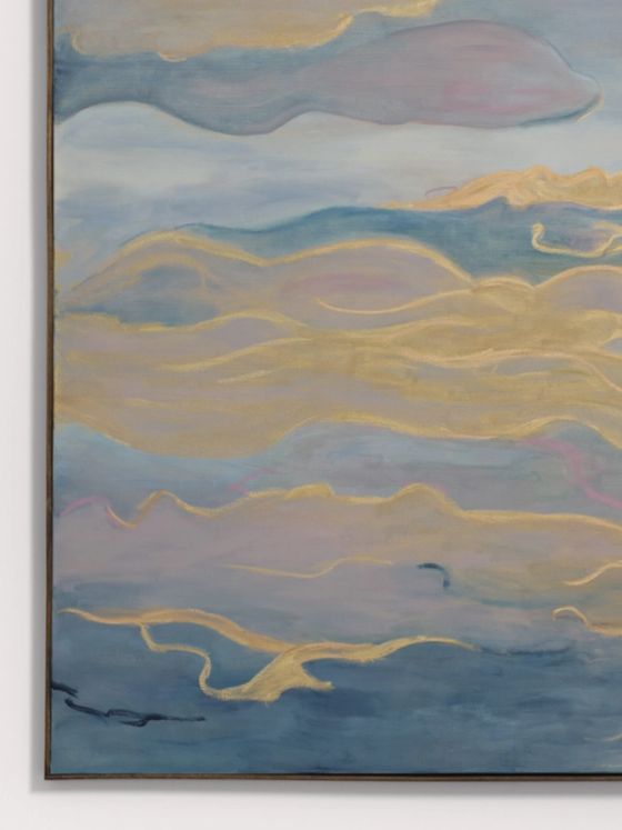 The work of Helen Frankenthaler and the Color Field painters of the 1960s and 70s have been influential to Roberts, whose paintings feature large swaths of uninterrupted color – a melange of different tones which seem, suddenly, to crystallize into areas of figuration: a flower, leaf or lily pad appearing from the depths.