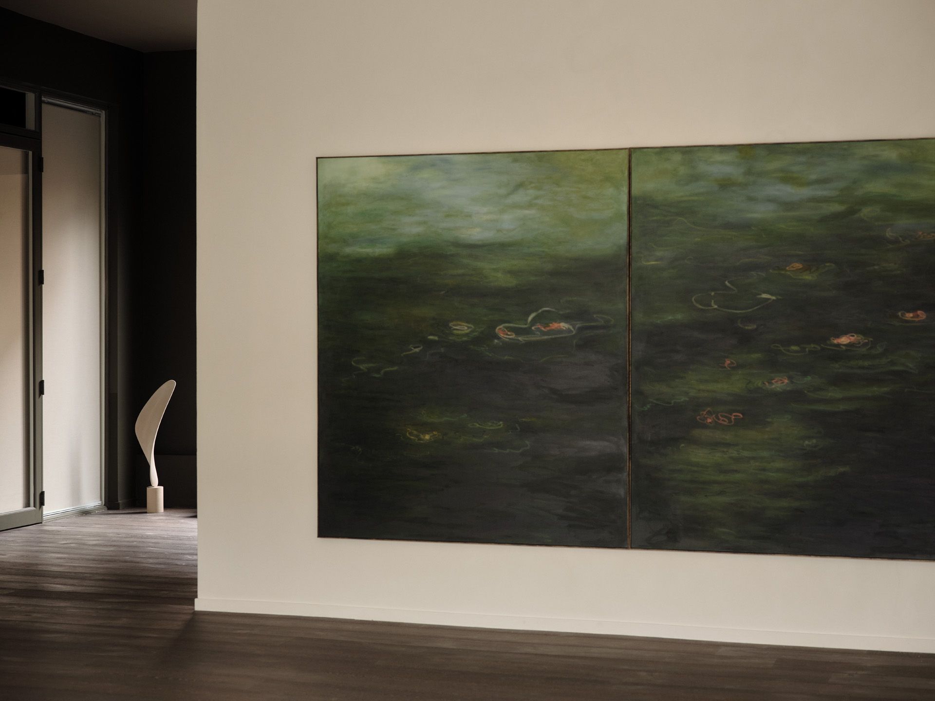 With an ethereal color palette, Roberts’ work evokes that of the Impressionists, in the way she conveys the sensation of nature’s transience, rather than the literal objects before her. She is also interested in further iterations of the ideas, techniques and colors put forth by the impressionists – in particular, the abstract expressionist paintings of Joan Mitchell, who responded to the same sliver of landscape in Giverny that Monet painted, many decades later.