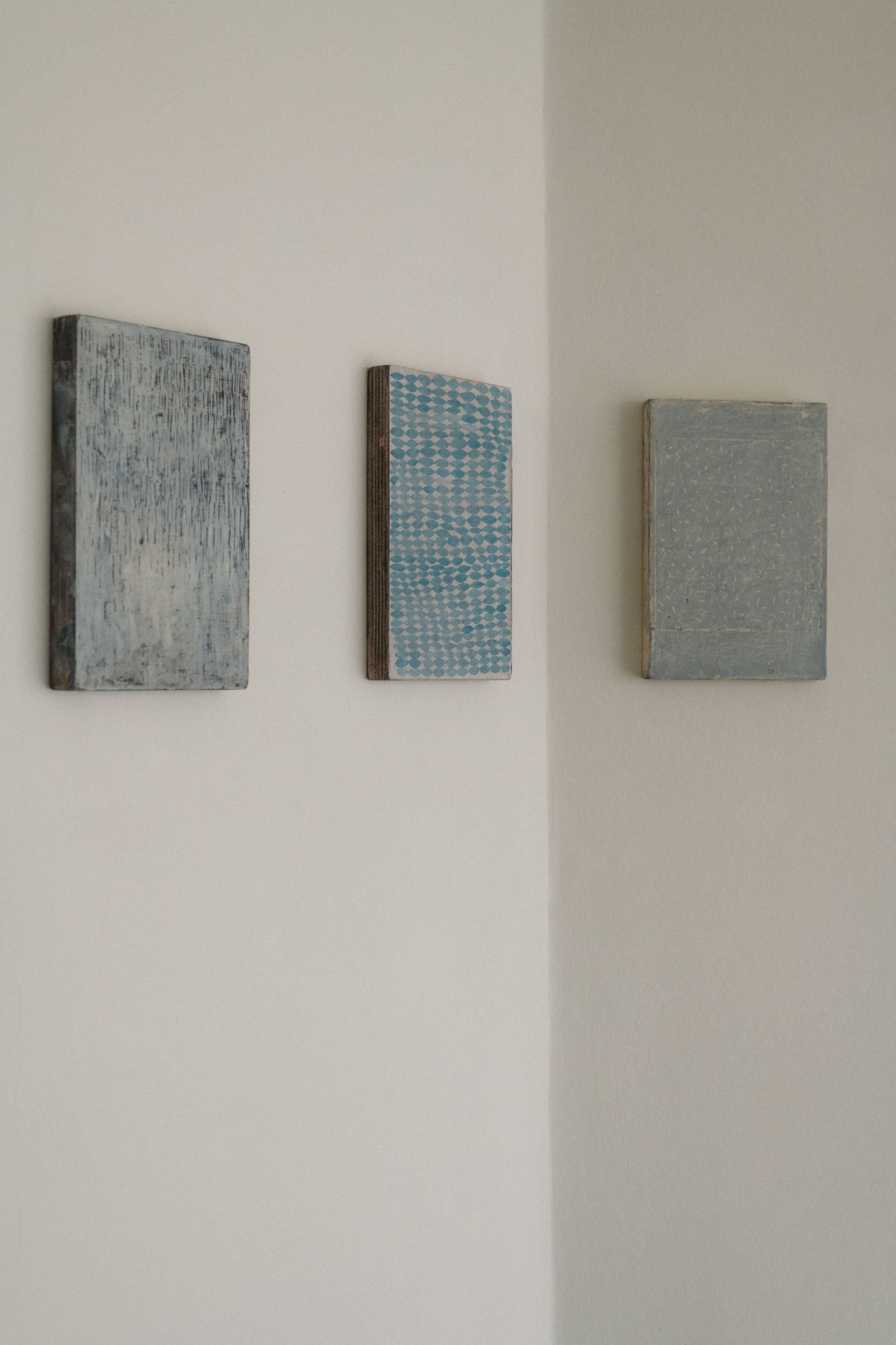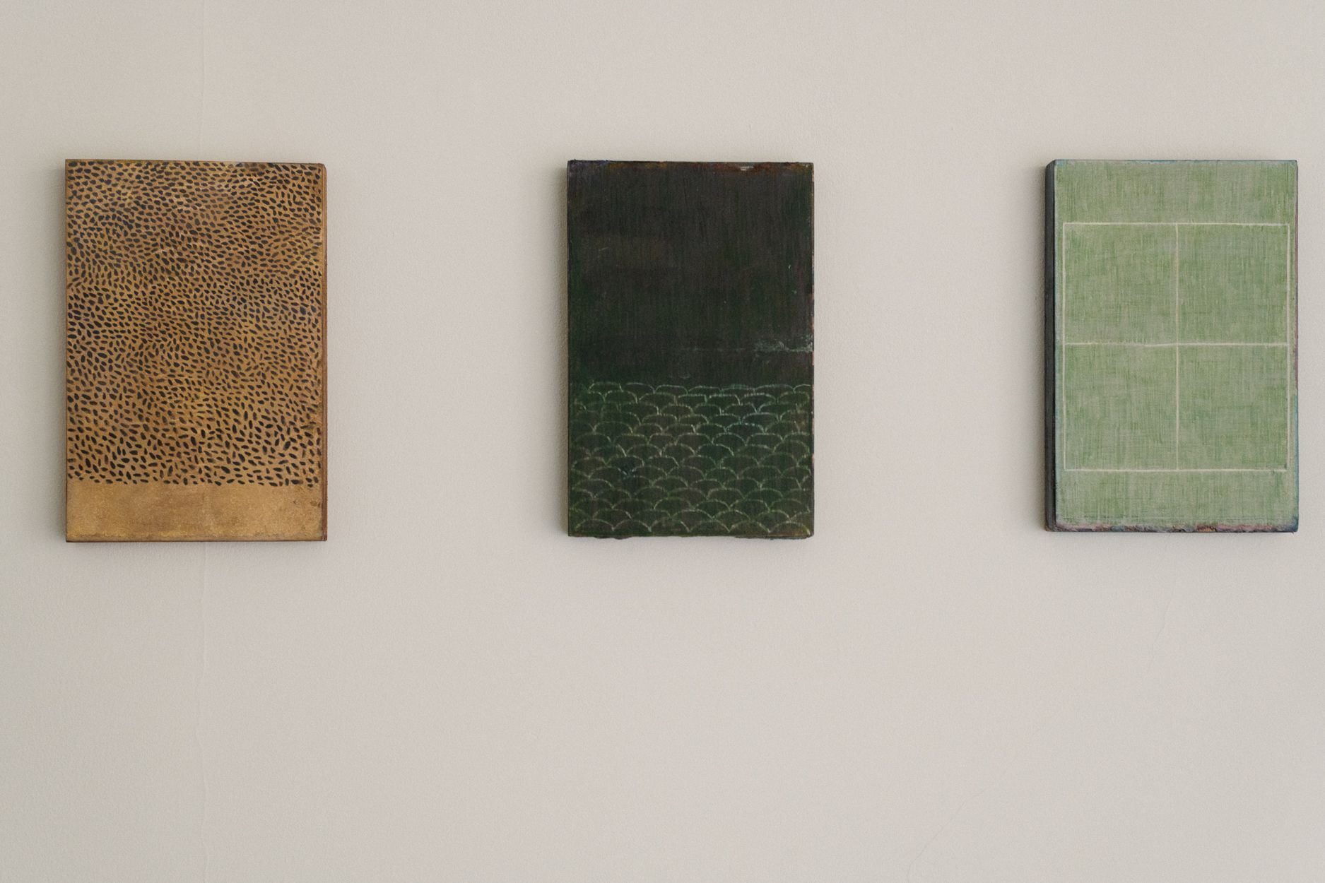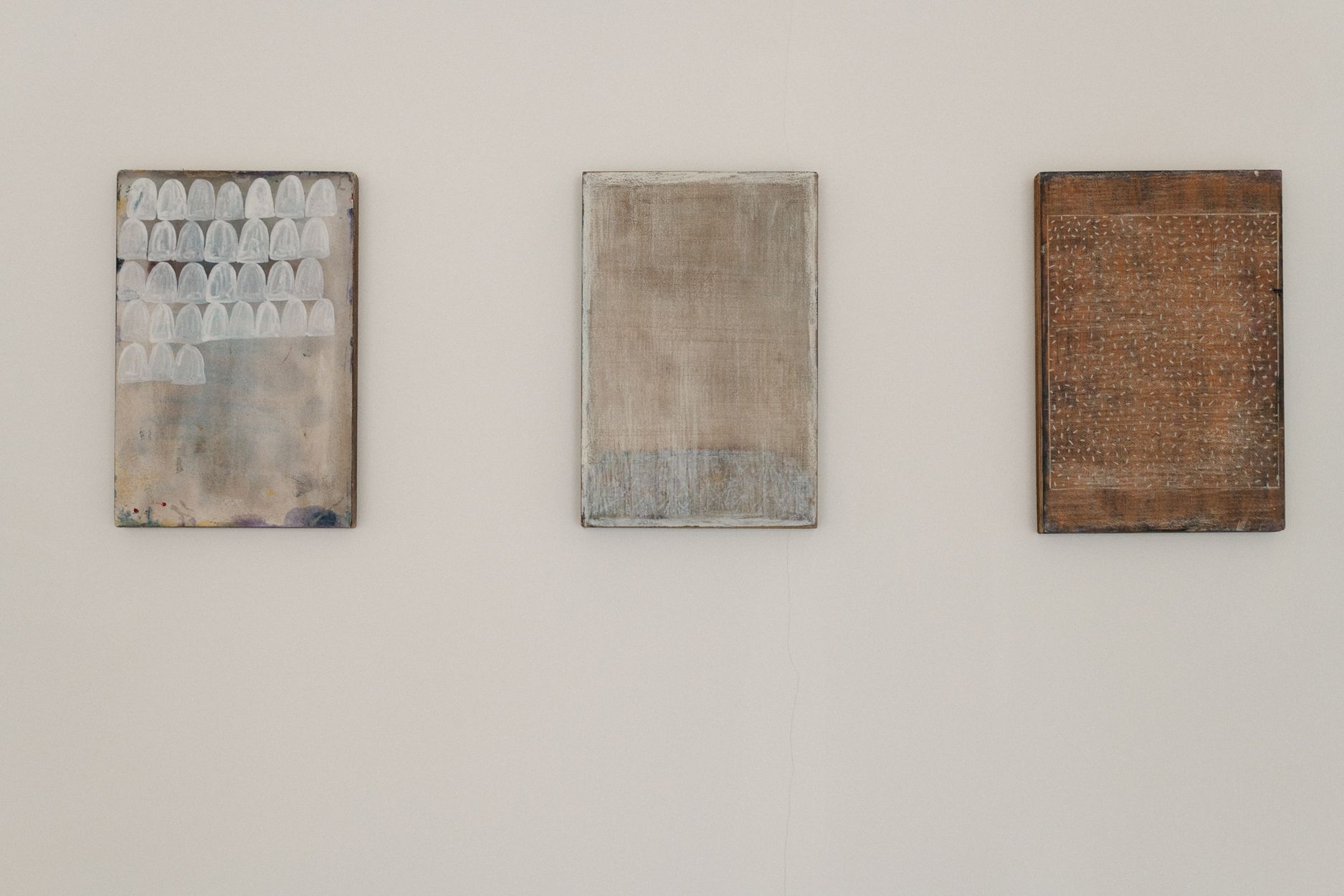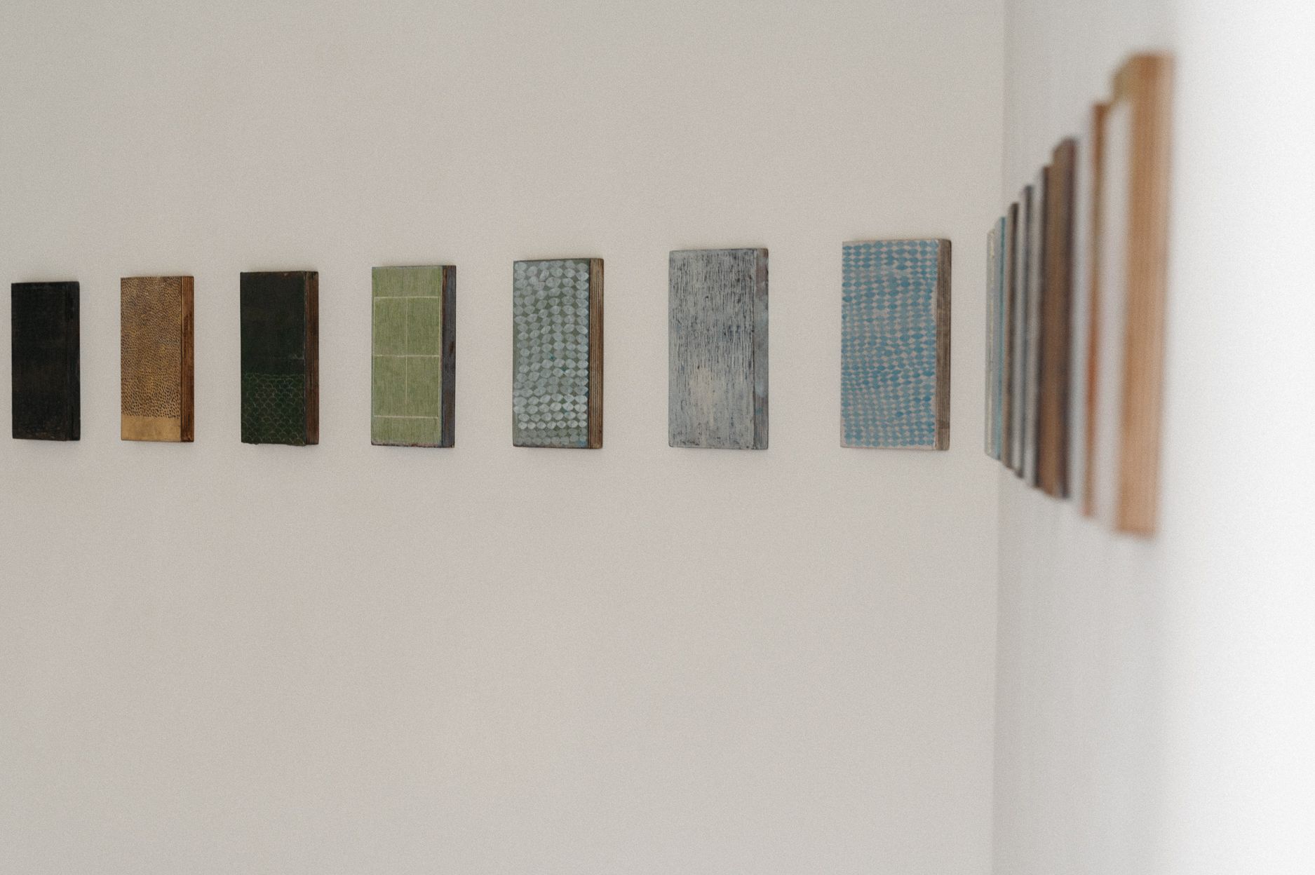 Irish artist David Quinn works across multiple canvases at once, composing abstract pieces in a regular format of 8 x 5 inches – the size of his sketchbook he used when he was a student. The resulting pieces appear as visual haikus, sharing a universal form and offering endlessly variable imagery; each a unique piece, yet part of a wider whole. The familiar format allows Quinn to focus entirely on the painting itself, moving beyond conscious thought to reach an instinctive, meditative state, where the understated, multilayered surfaces of his works arise.