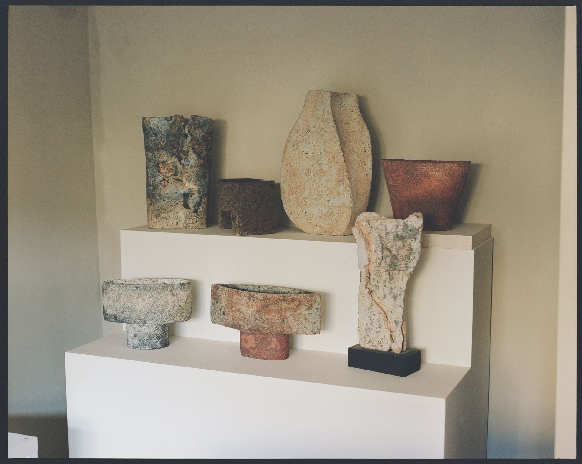 Philp studied ceramics at Cardiff Art School, and has also dedicated much of his life to building, using traditional methods to work with reclaimed stone and other materials. His proficiency for stonework culminated in his personal renovation of Llansôr Mill, his former home in Monmouthshire—a 15-year project that saw his ceramic-making put entirely to one side. Since completing the renovation around 25 years ago, Philp has focused purely on his studio pottery, and now makes his pieces from his home studio in Bath, UK, in a mews house arranged around a courtyard, where he has lived since 2010.