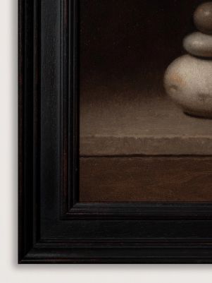 Will CalverA Tower of Pebbles (2025)framed: 28h × 28w cmOil on panel
