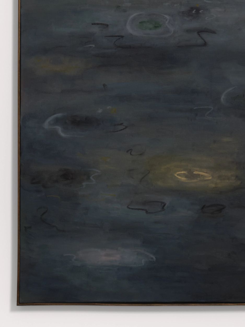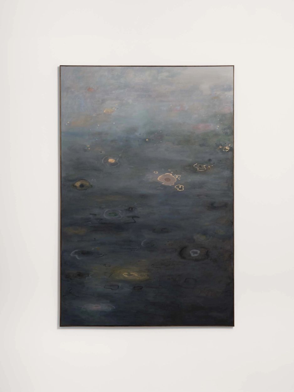 Ash RobertsDecember Frost (2026)framed: 184h × 123w cmAcrylic, oil, oil stick, gold pigment on canvas