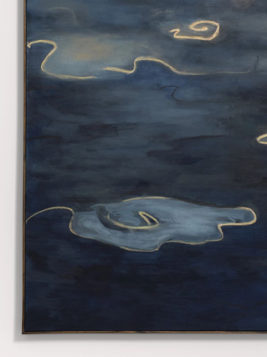 Ash RobertsFebruary Ink (2026)framed: 184h × 123w cmAcrylic, oil, oil stick, gold pigment on canvas