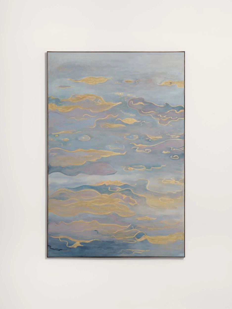 Ash RobertsJanuary Silence (2026)framed: 184h × 123w cmAcrylic, oil, oil stick, gold pigment on canvas