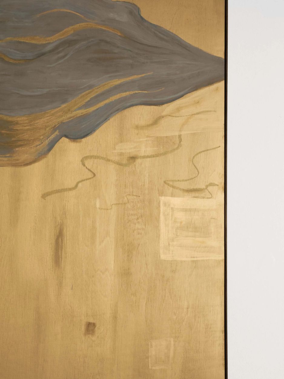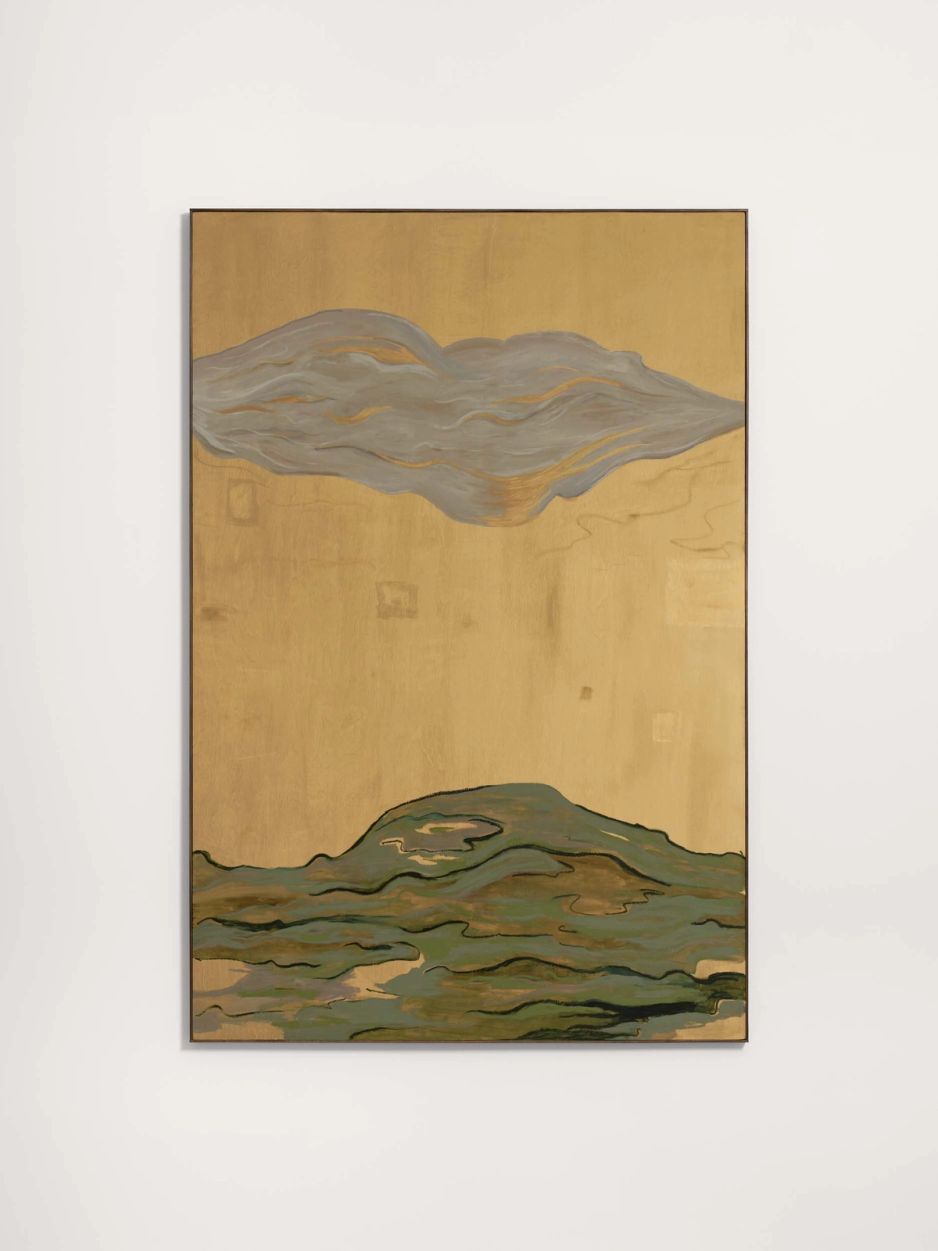 Ash RobertsJune Light (2026)framed: 184h × 123w cmAcrylic, oil, oil stick, gold leaf, gold pigment on birch panel