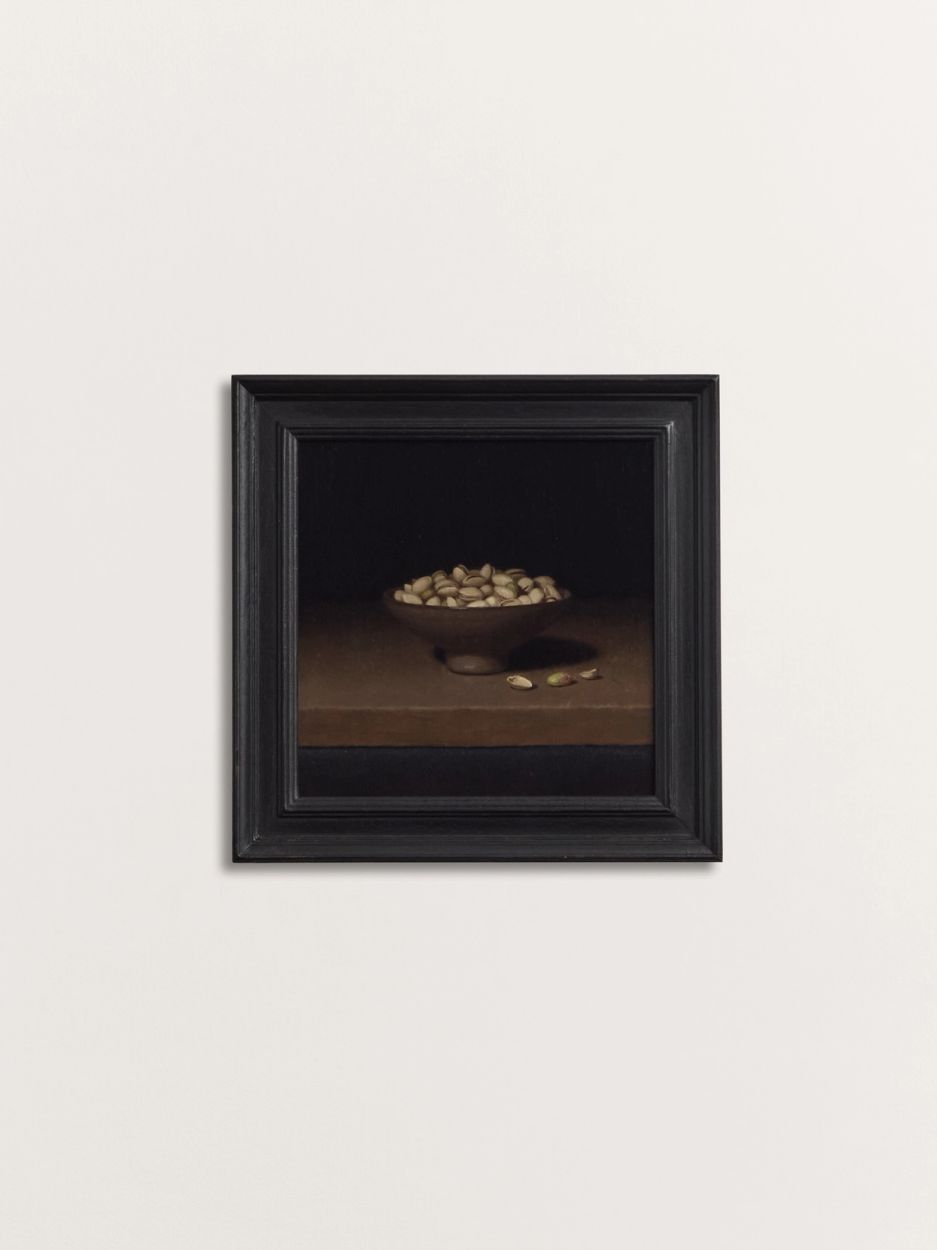 Will CalverPistachios (2025)framed: 32.5h × 32.5w cmOil on panel