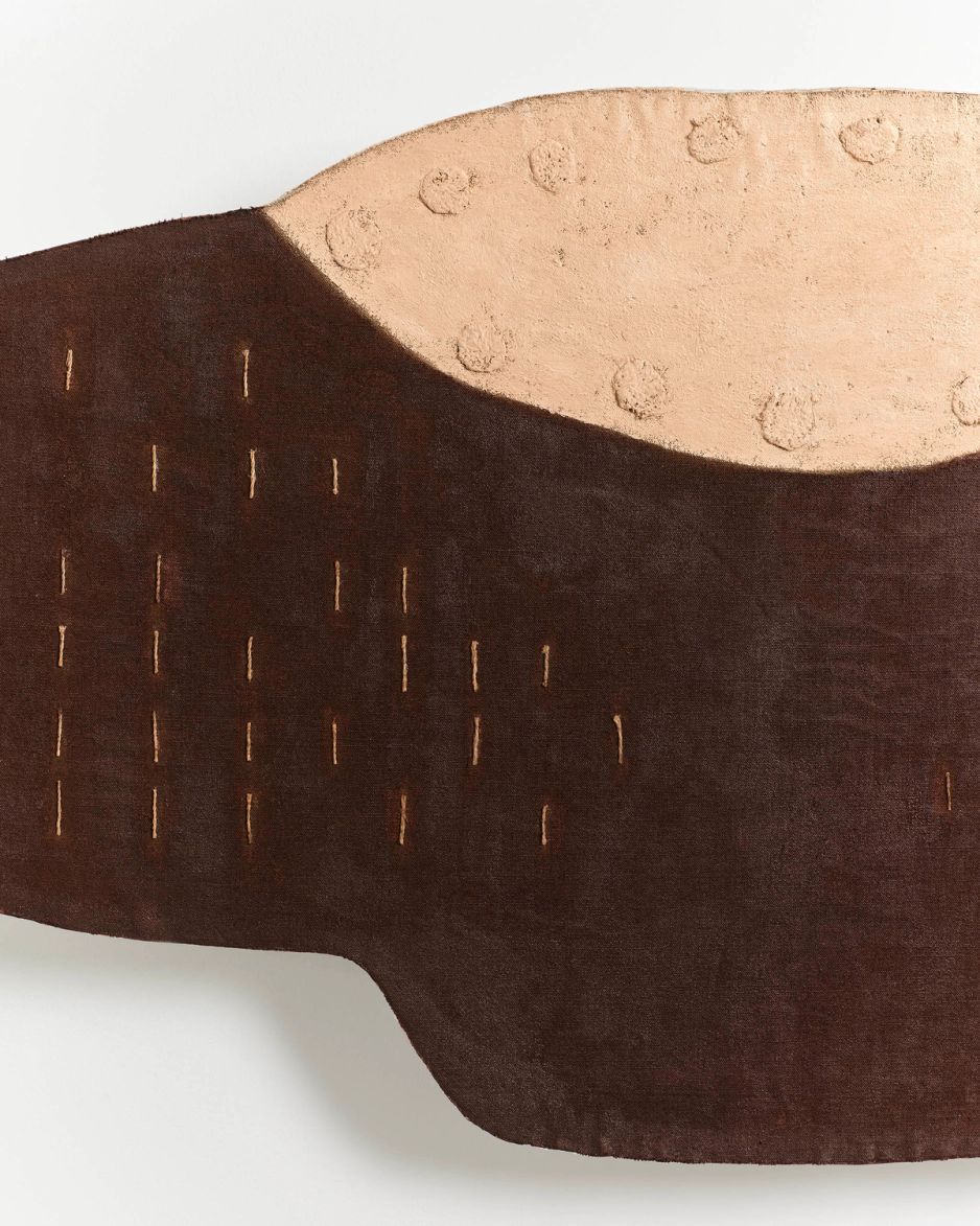 Lee’s work — which comprises oil paint on canvas, as well as collages of natural fiber, fabric, and plaster on shaped canvas — explores the delicate relationships of individual entities as they relate to the whole, translated by way of the broad and recurring theme of coexistence.