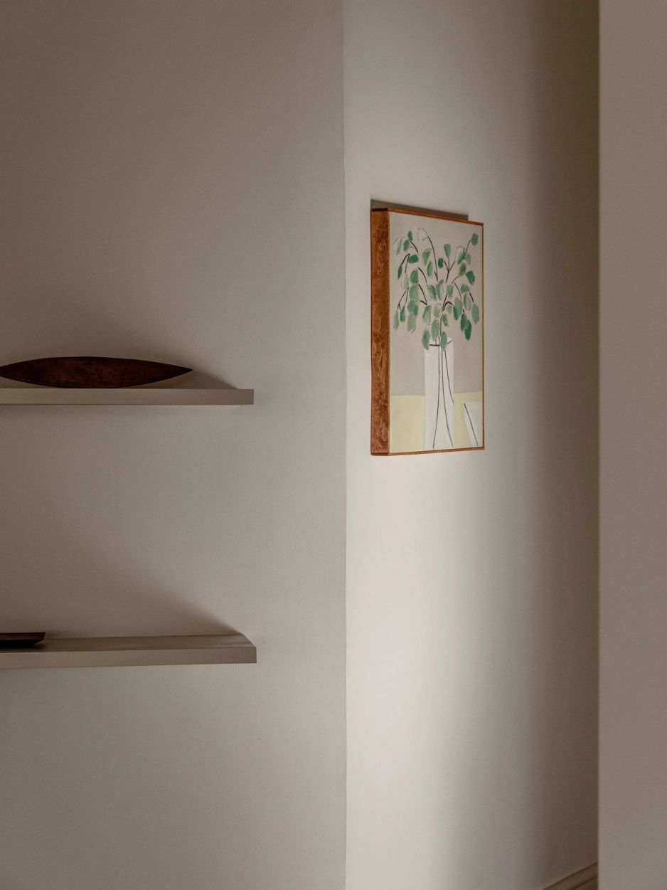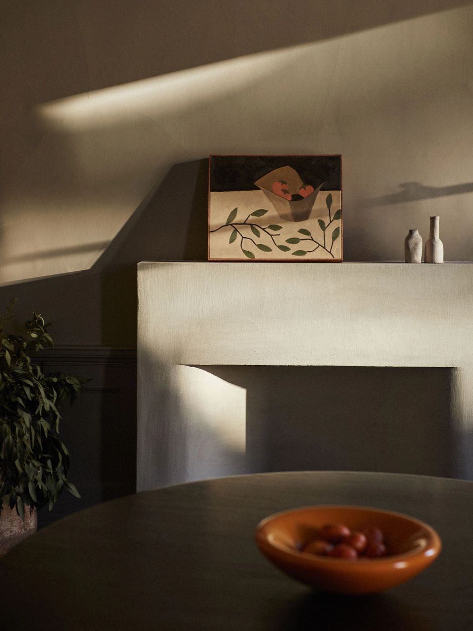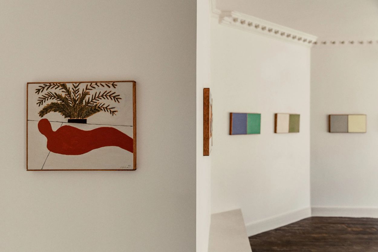 Representing a scene in its bare essence is a recurring approach throughout the show, apparent in Two Lovers Sleeping – an intimate moment expressed as an elegant geometric composition of cool yellow and green forms and lines. Elsewhere, Zabawa draws on other visual elements of his everyday life, such as branches of eucalyptus leaves held in a vase, or the assortment of objects found on his desk, where a painting within a painting is suggested in the background. “I aim to paint from my own life,” he says. “I believe that as an artist, your own story is truly all that matters.”