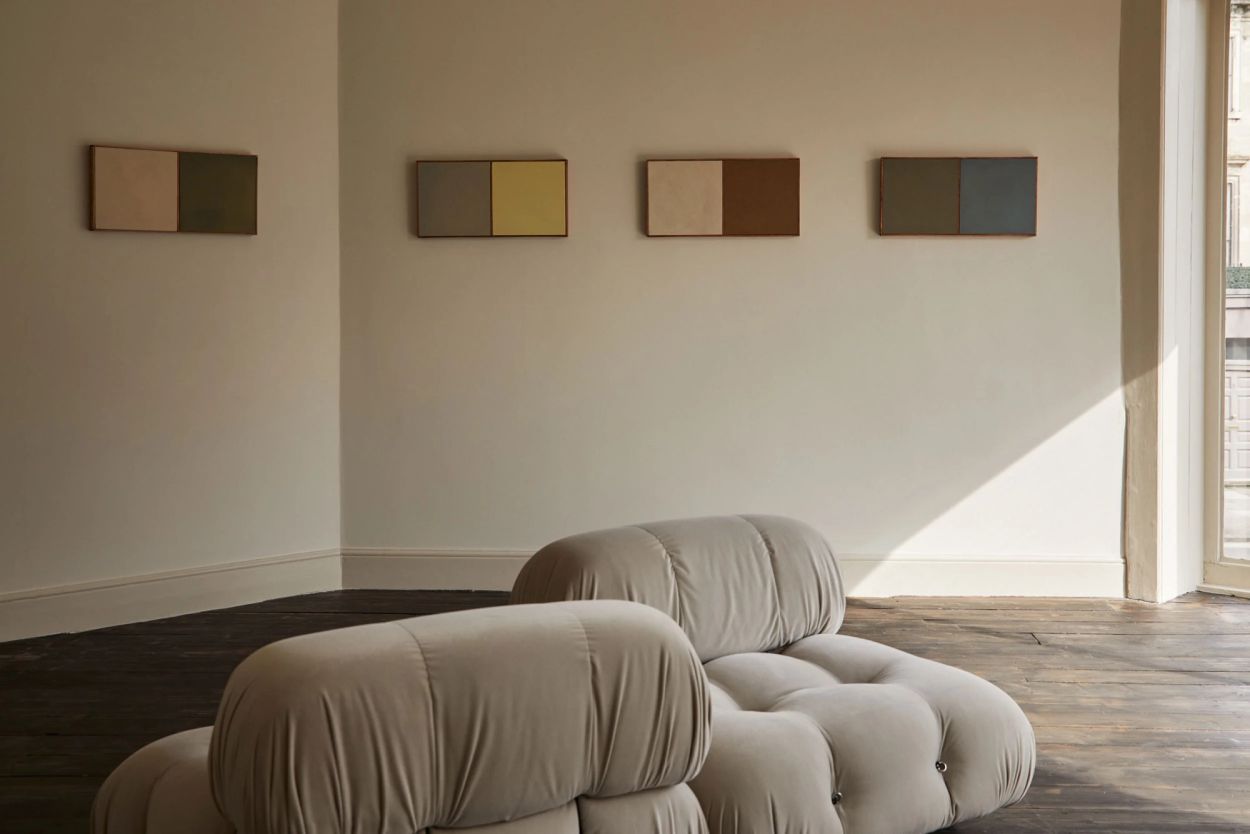Zabawa conceived the Gateway diptychs, which juxtapose canvasses painted in bold single colours and rich brush strokes, to reveal a glimpse of the process behind his artmaking. “The way I think about painting is like sculpture: carving away at the excess material until a final form is revealed,” he says. “When I develop a visual idea, I always begin by thinking about two colours. In my experience, the eye recognises colour before it understands form – humans have an immediate, instinctive reaction to colour, and then milliseconds later, they understand what the object is. With these paintings, I aimed to distil scenes or figures into their bare essence, represented by two colours.”