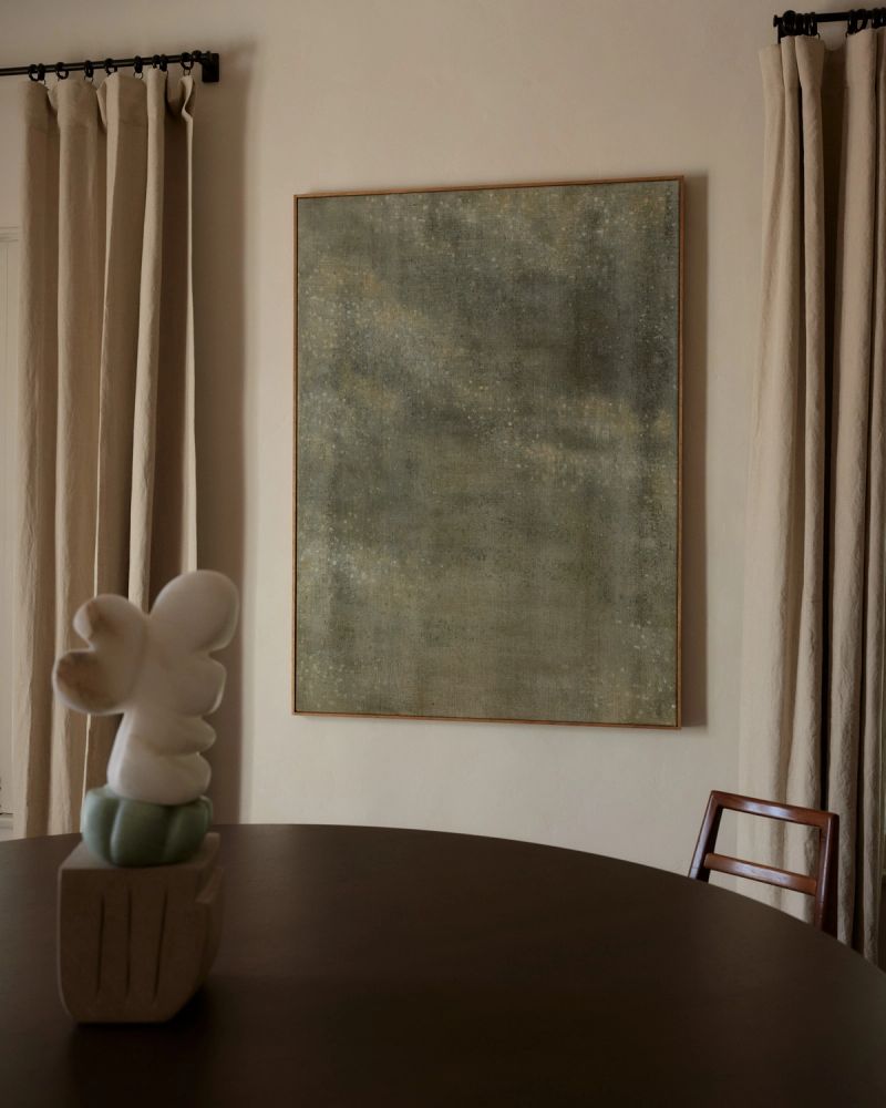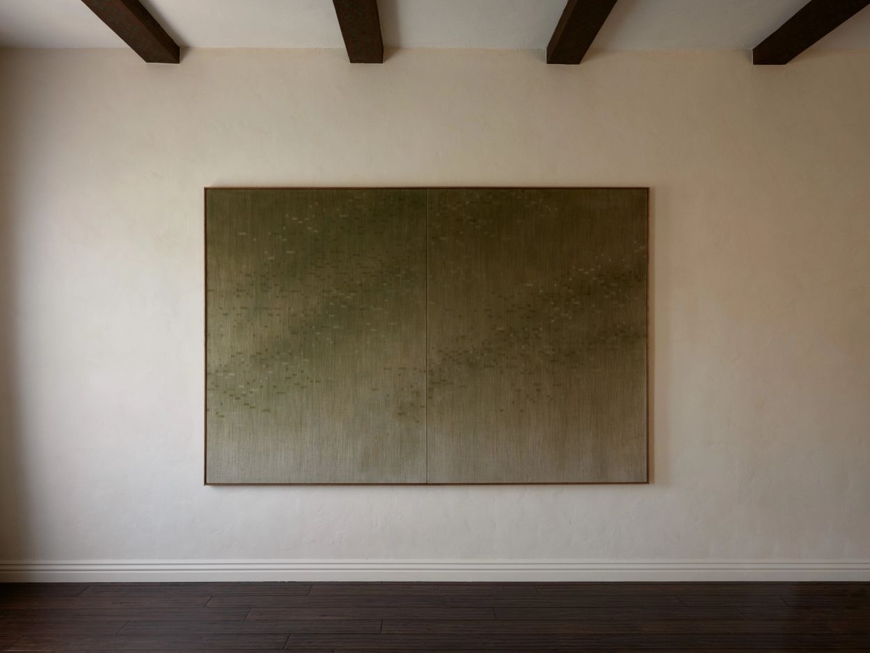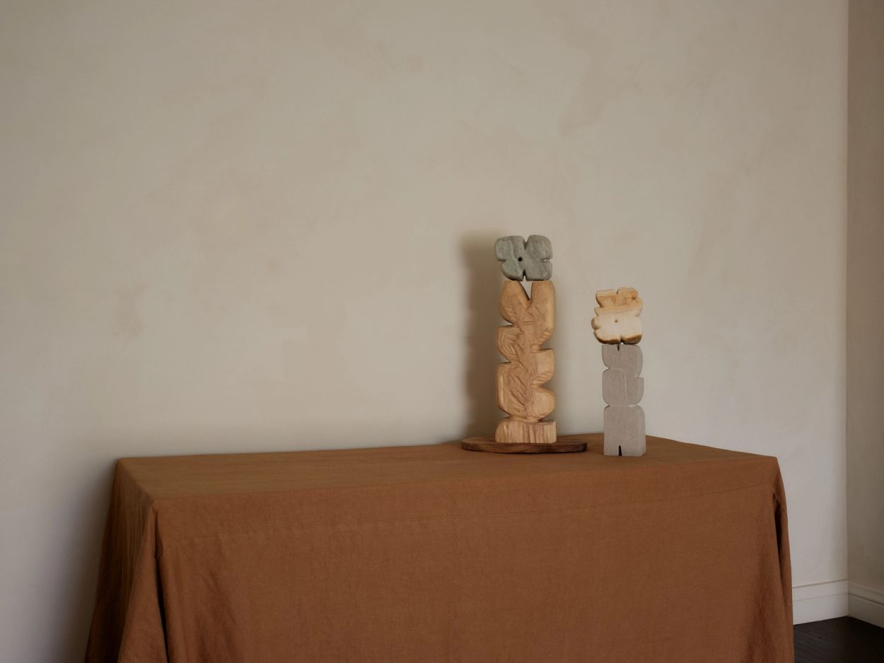 Stevens' abstract paintings emerge from a process of attunement — following internal and external rhythms through layers, pauses and iterations that transform the pictorial plane into what he calls "a temporal field." Working with raw materials like jute and linen, he creates quiet, architectural works that invite viewers into shared moments of awareness. Yaron's floral sculptures capture ephemeral moments of growth, translating the upward surge of life into permanent forms, carved from materials like greenwood, which still pulse with its origin tree's life force. Both artists grapple with paradoxes — Stevens with rhythm within stillness, Yaron with fragility through permanence — creating pieces that exist in openness, responsive to the viewer's encounter and embodying nature's fluid systems of repetition and variation.