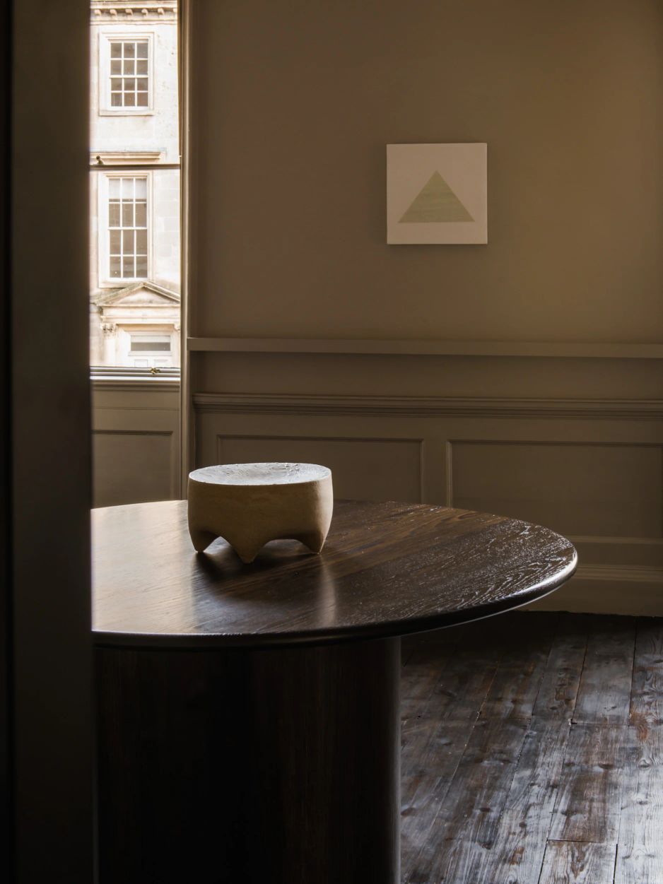 Kim’s paintings are deeply meaningful to her on a symbolic level, and much of her work concerns the figure of her mother. “One day, I realised that, up until that point, I had seen her as my mother only,” says Kim. “I began to think of her as a human being, and as a woman, too. My mother took care of her three children by herself for her whole life. I wanted to understand her existence, so I began writing out the numbers 1, 2 and 3, over and over again on a canvas.” This process is performed in Mountain I; at first glance, the green triangular form appears to be composed of calligraphic script, before a closer look reveals the numerals, their tightly packed arrangement vibrating against the ground.