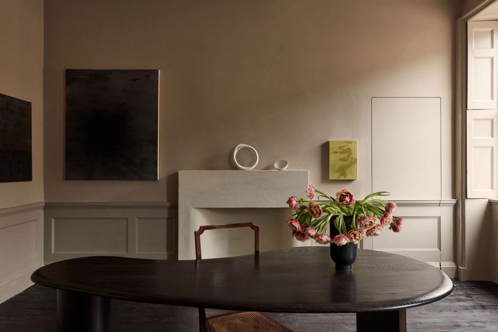 The titles of the paintings are chosen in a similarly abstract method as their composition: Hodge combs through copies of the London Review of Books, listing individual words she resonates with, and allocates them to each work based on a perceived affinity. “There is no definitive meaning attached to each painting, so the titles are purposefully fragmentary and abstruse, reinforcing the sense of these works as free-floating and existing in the abstract realm,” she says.