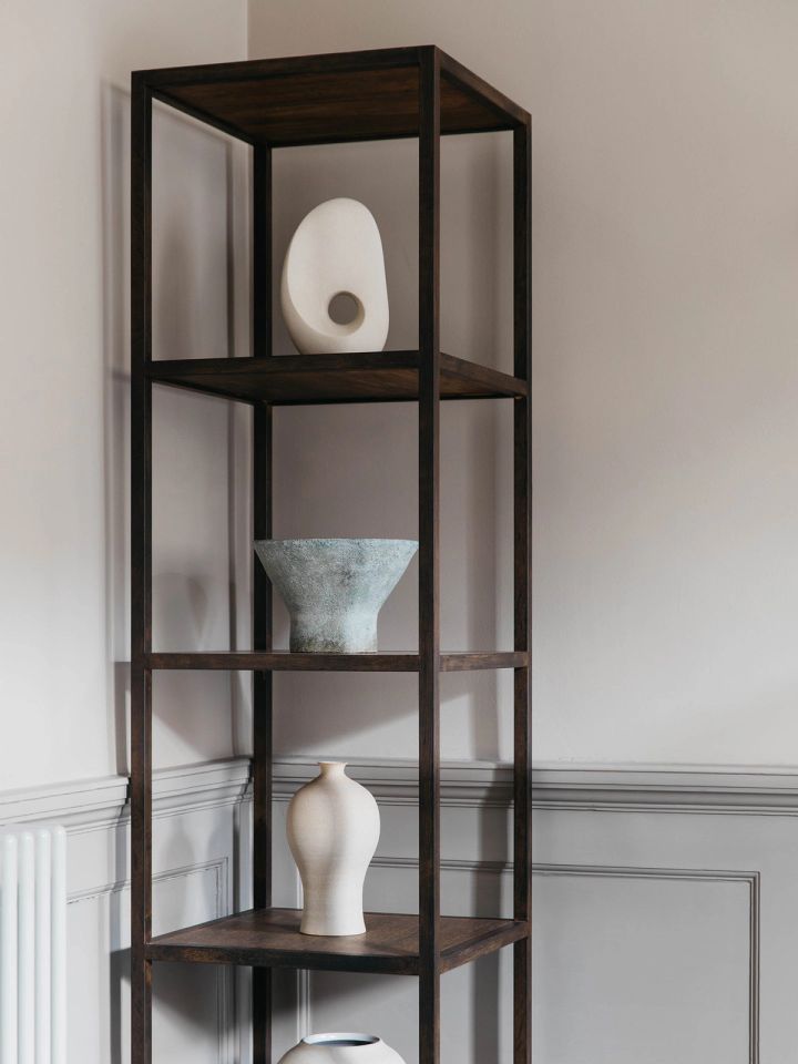A passion for stonework pervades Philp’s practice. He spent several years focusing on the renovation of Llansôr Mill in Monmouthshire, his home for 35 years, using reclaimed stone gathered from the surrounding countryside. “I would discover old farm buildings being demolished, and find exceptionally large stones that were beautifully aged,” he says. “It was my version of romantic archaeology.” The large ceramic sculpture in the gallery’s window display, formed of five stoneware blocks, testifies to Philp’s love of such forms.