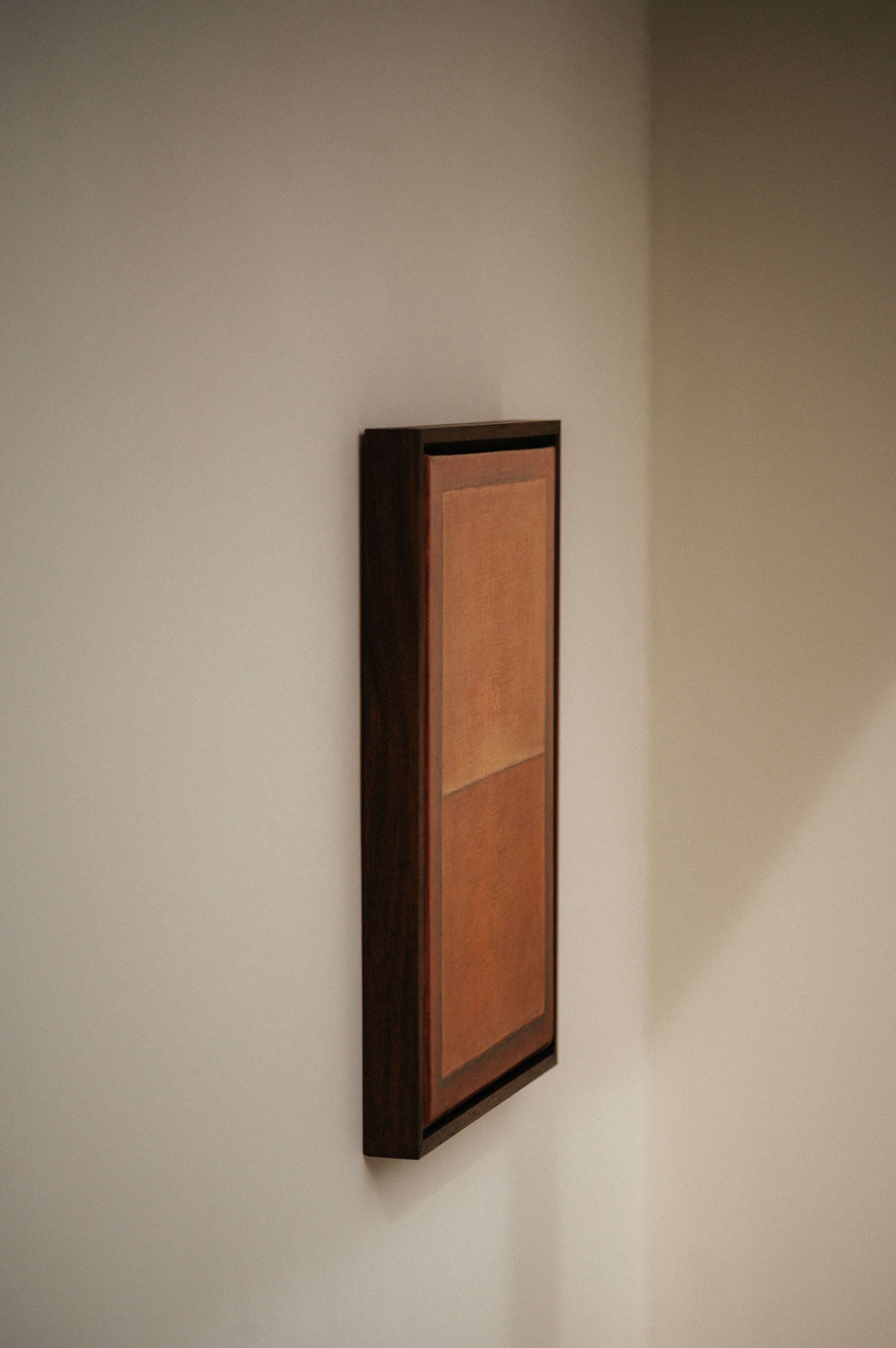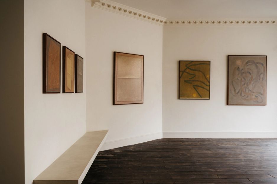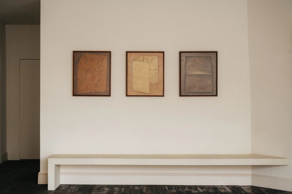 Presenting as a kind of monochrome - beige on beige, red on red, grey on grey - the overall tone of each painting emerges from an abundance of shades and different viscosities. Building his paintings in alternating layers of egg tempera and oil – a classical technique that sees washes of thin, watery colour laid on top of heavy oils – Boorsma develops a softness, a diffuse quality that recalls the density and atmosphere of a fog or mist.