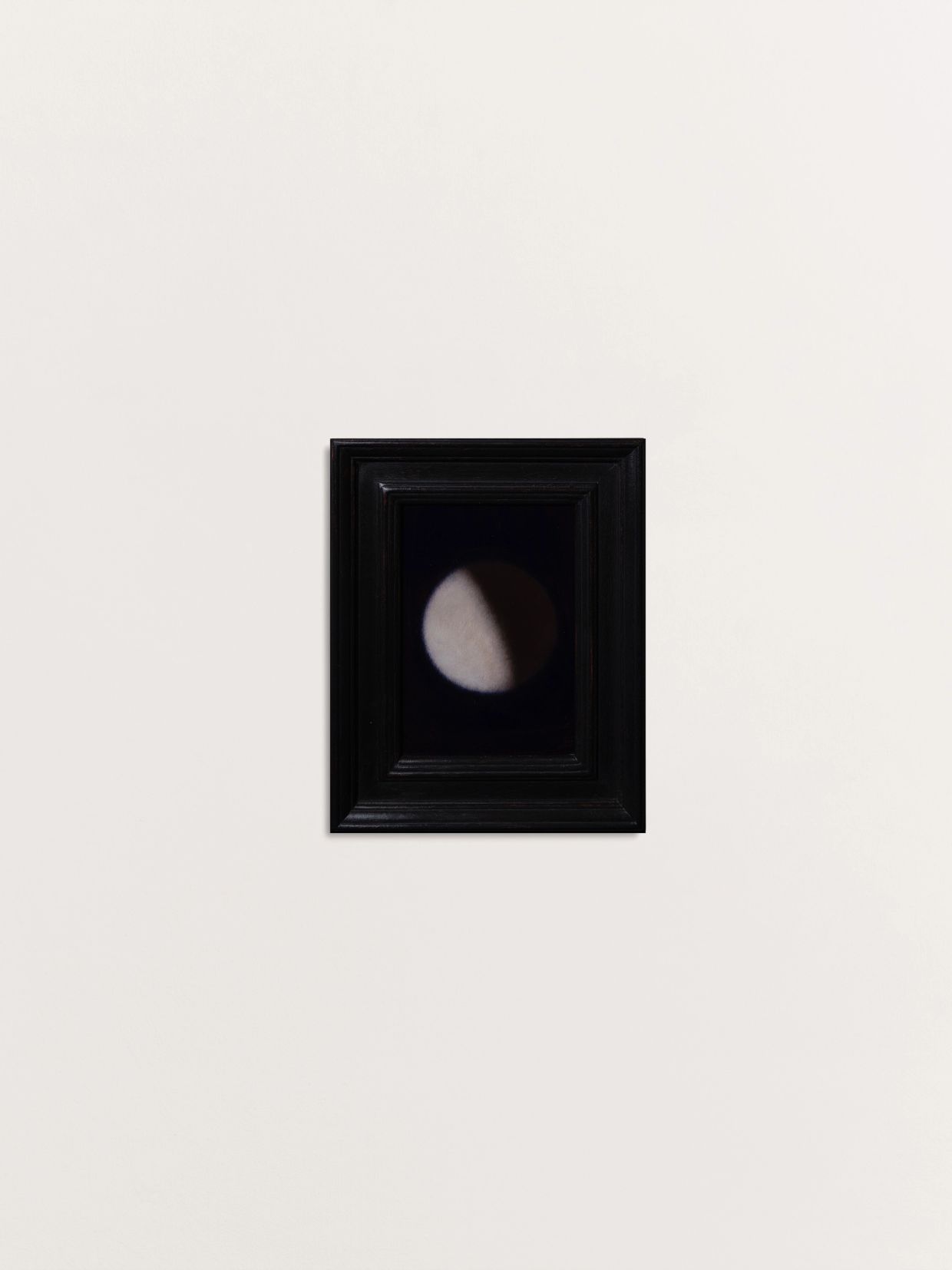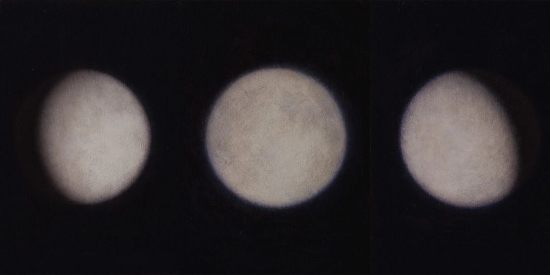 This installation explores the moon’s temporal nature through a sequence of twenty-eight small paintings that trace its waxing and waning over the course of a month. Each painting functions as a single frame; together, they can be read as a moving image, capturing the rhythm and continuity of the lunar cycle.