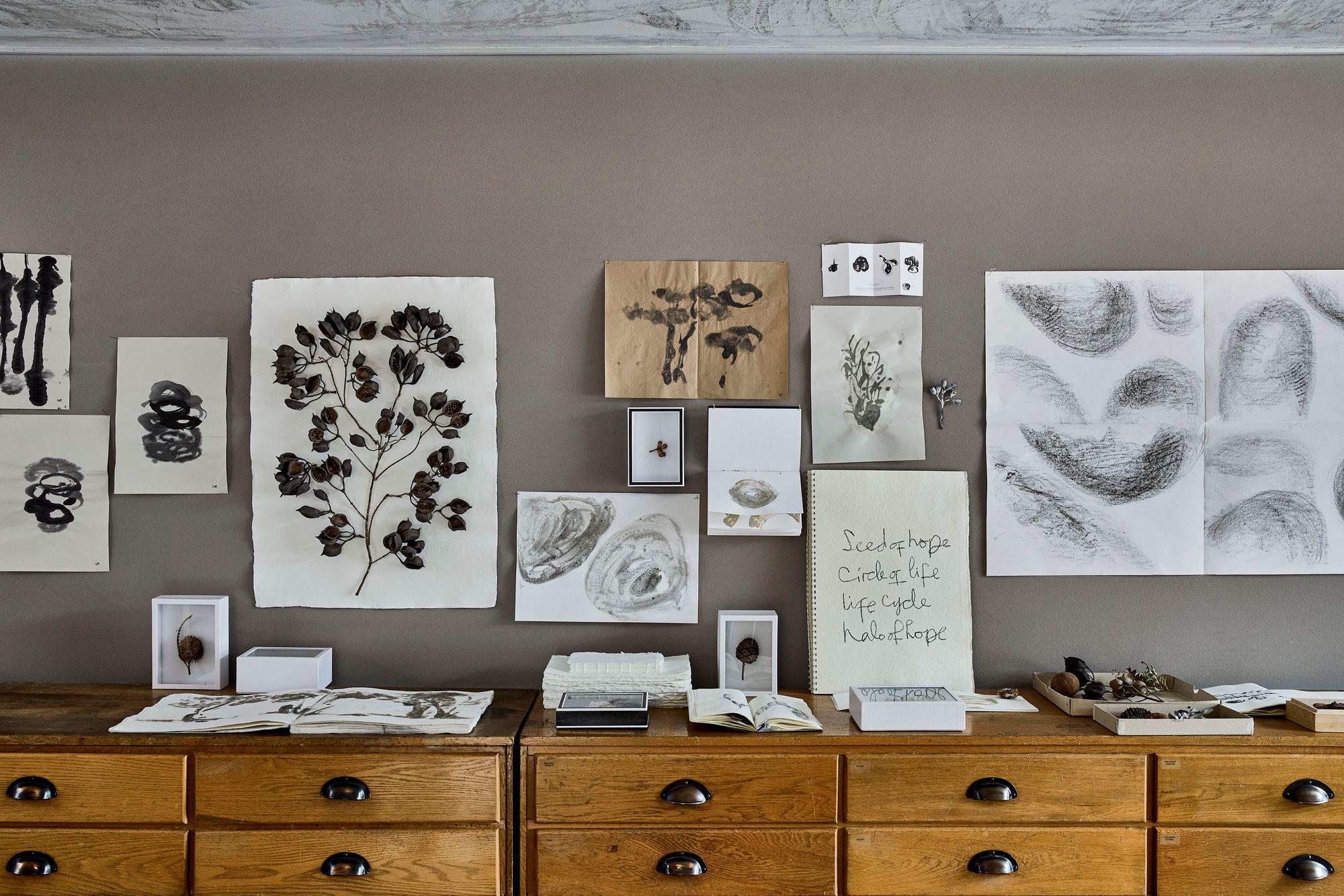 Spencer Fung is exhibiting a new show, titled Seed of Hope, at Bamford Barn in Gloucestershire and the Bamford shop in Mayfair, with dates to be released soon. The show features works in clay and graphite, hand-stitched collages, and botanical samples collected by Fung on his walks through nature. The show, commissioned by Carole Bamford, coincides with a front cover feature in the second volume of Seed.