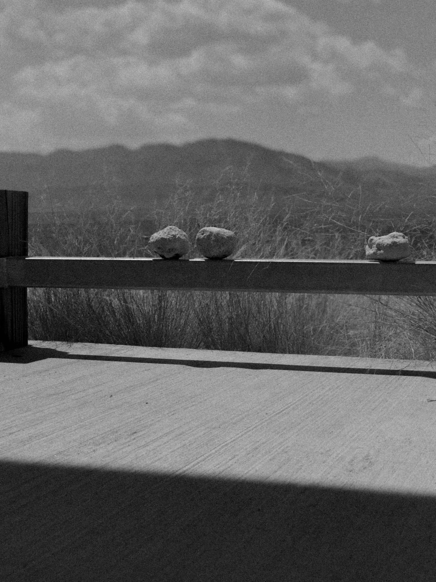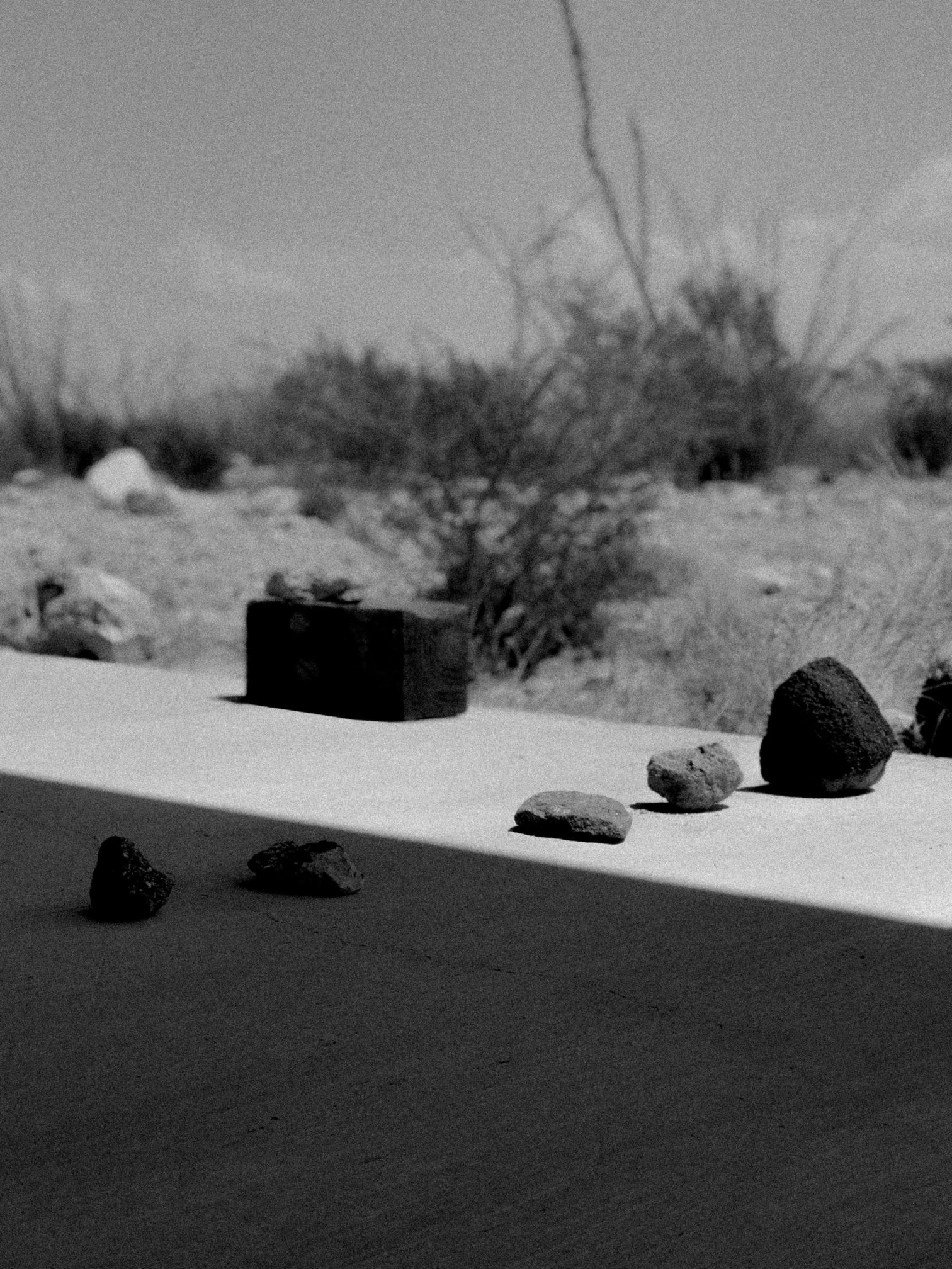 Northover created this work in response to its location - a modernist house in Texas near the Mexican border - amidst the conversations about building a wall between the US and Mexico. The installation explores positioning and the weight of placement, as it defines borders both visible and invisible. The rocks, collected from the surrounding landscape, hold the knowledge of millennia; positioned against the modernist structure of the house, between light and dark, they describe the tension between oppositions.